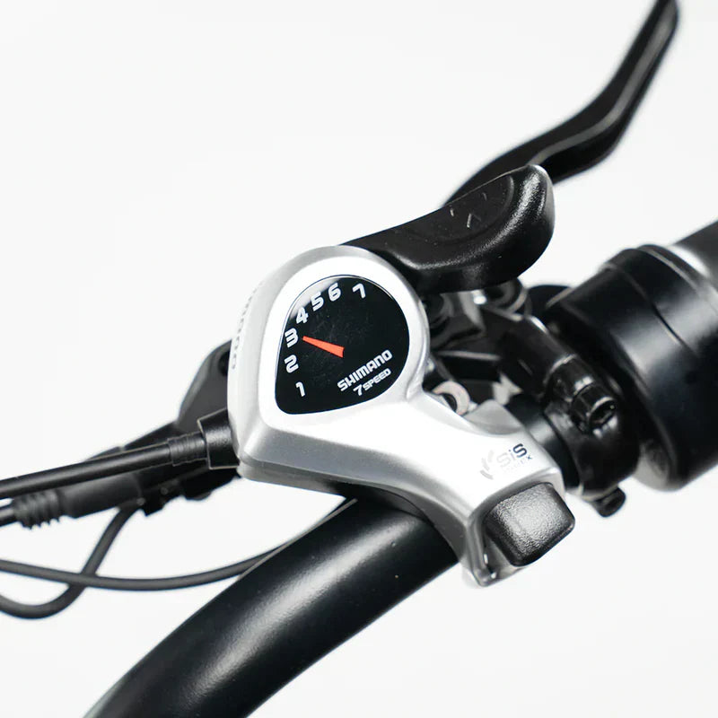 De brede banden zorgen voor stabiliteit en schokdemping, het lange zadel biedt comfort tijdens langere ritten en de krachtige motor zorgt voor soepele ondersteuning onder alle omstandigheden.